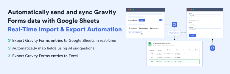 WPSyncSheets For Gravity Forms – Send Gravity Forms entries to Google Sheets in real-time with zero manual effort. Automatically map fields using AI suggestions, auto-create sheets, and keep data synced for reporting, analysis, or backups without worrying about any loss of Gravity Forms entries data.